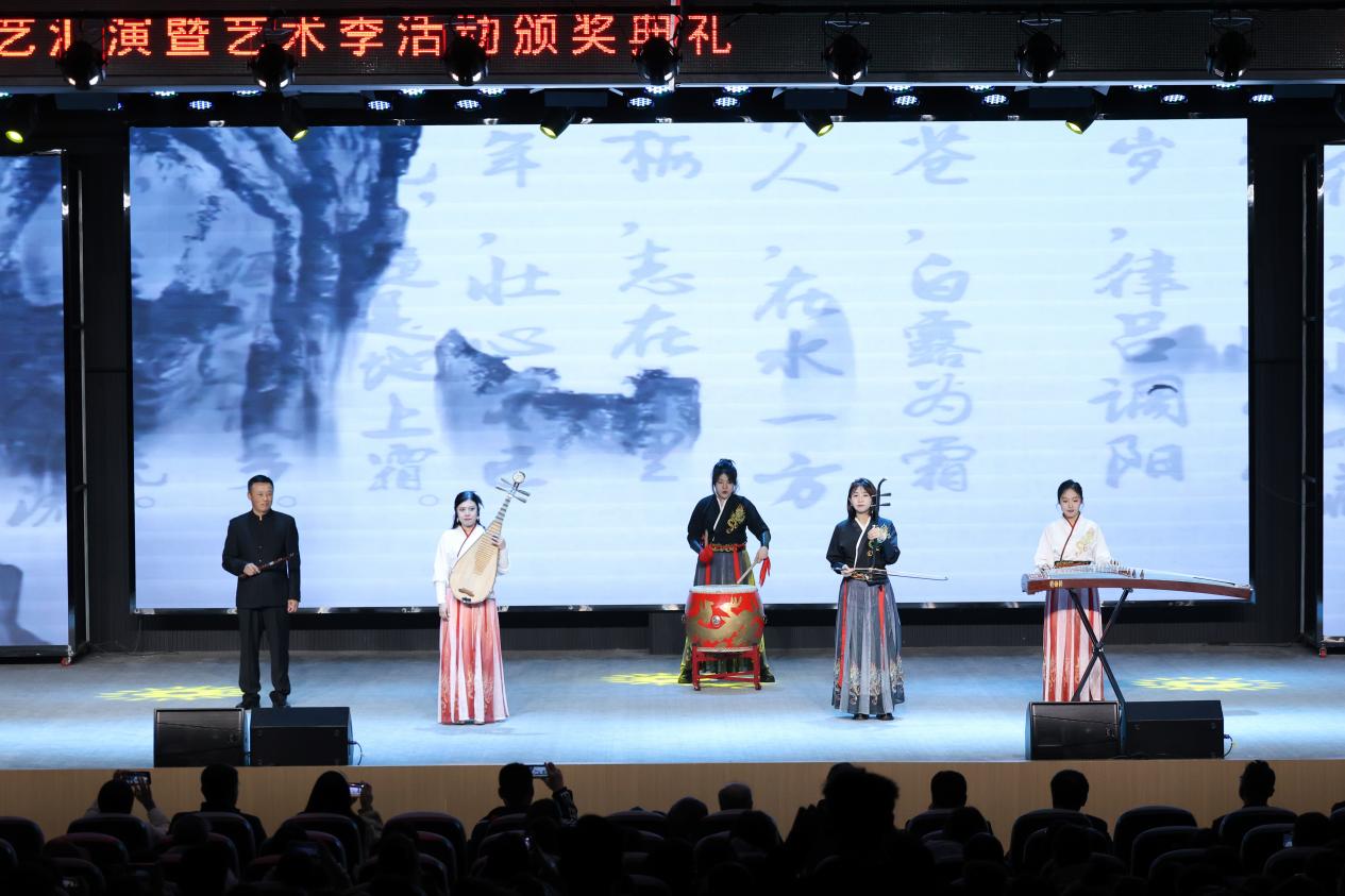 演出中,学校对在“艺韵青春,礼赞时代”艺术季系列活动中表现优异的个人与集体进行了表彰。依次颁发了经典诵读比赛、主题演讲比赛、校园主持人大赛、校园十佳歌手大赛等单项赛事奖项以及优秀组织奖,充分肯定了同学们的艺术才华与团队精神,树立了先进典型,营造出见贤思齐、积极向上的校园文化氛围。