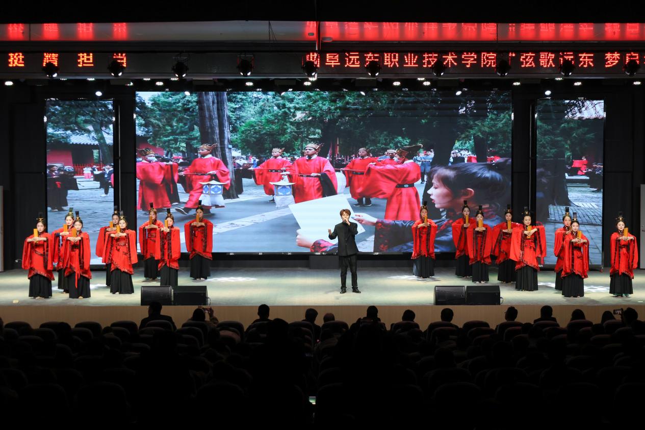晚会围绕“以文化人、以美育人”主线,整场演出共分为“洙泗传薪·寻梦启航”“匠心筑梦·勤朴砺能”“春风启梦·师道长馨”“志在远东·同心同梦”四个篇章。歌舞《风咏论语》、校训朗诵《岁月回响》、古典舞《礼乐风华》等节目,生动展现学校对中华优秀传统文化的传承与创新;爵士舞《晨光初启》、情景歌舞《康养仁心》、乐队串烧《逐光而行》等演出,彰显出远东学子蓬勃的青春活力与鲜明的专业特色。教职工代表带来的民乐合奏《礼颂师韵》与辅导员节目《聚力护航》,深情演绎了为师之范与护航之暖,赢得现场阵阵掌声。